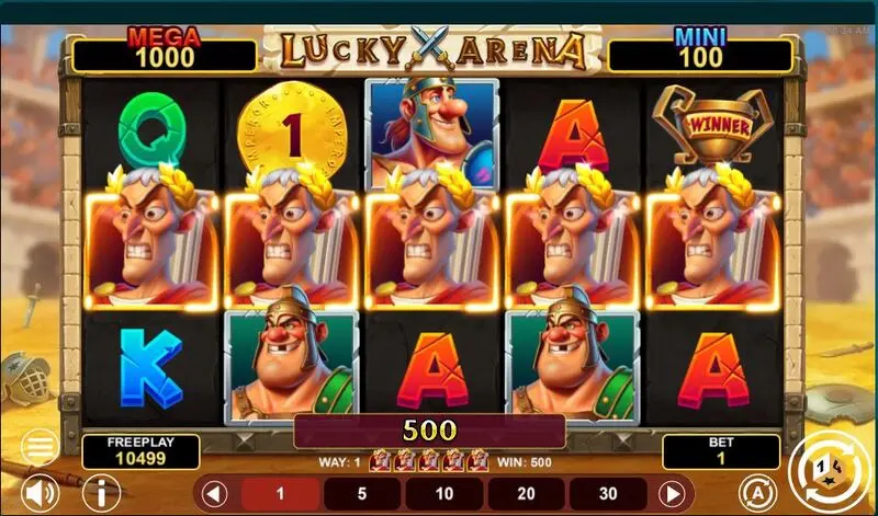 Lucky Arena Hold And Win is a 5 Reel / 243 Line slot game, released by 1Spin4Win in in January 2026