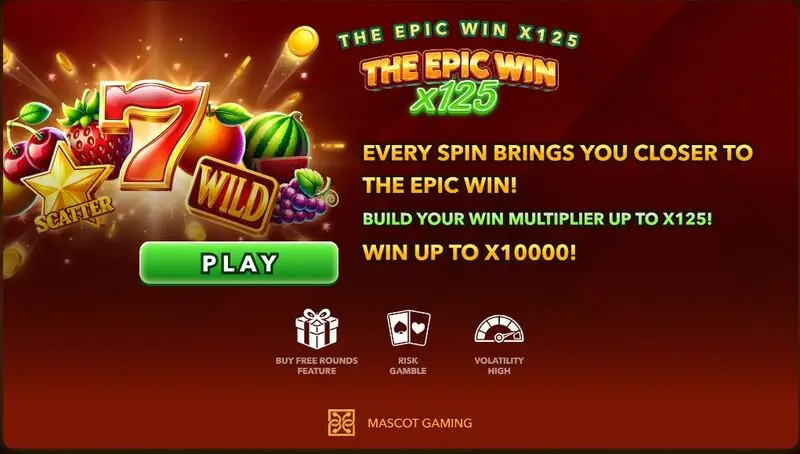 The Epic Win x125 is a 5 Reel / 5 Line slot game, released by Mascot Gaming in in February 2026